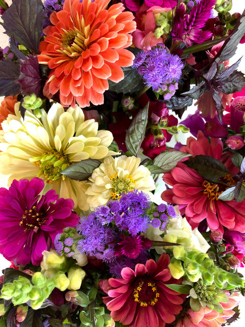 We grow many varieties of annual flowers and foliage in addition to an expanding perennial field. Some of our favorite annuals are: Zinnias, Dahlias, Snapdragons, Statice, Celosia, Gladiolus, and Strawflower. We succession plant many varieties of pollen-free Sunflowers every week during the summer growing season to ensure we have a constant supply all summer long and even into October. We also love growing flowers that dry well like Statice, Strawflowers, Celosia, Gomphrena, and Lavender. Our flowers are harvested daily at their perfect stage to ensure a long vase life for our customers.